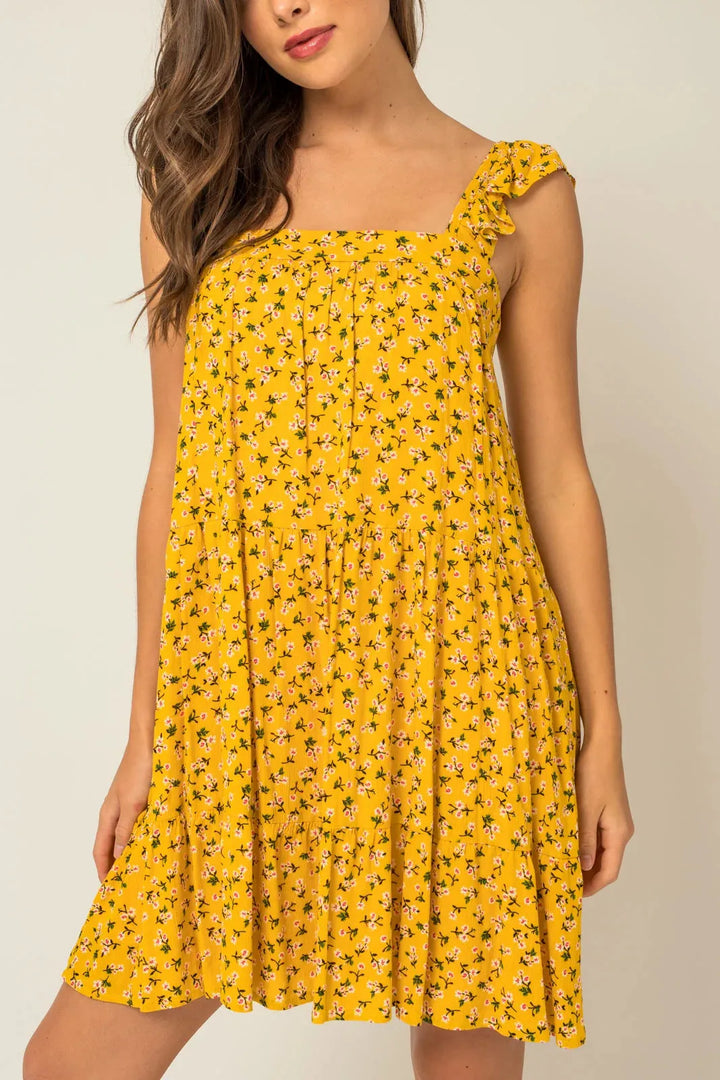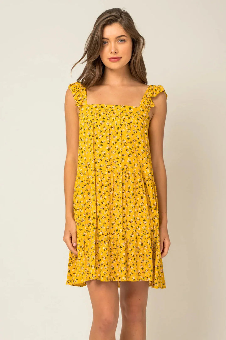 Stay stylish and comfortable with our Ruffle Shoulder Square Neck Ditsy Mini Dress. This dress not only features an on-trend ruffle shoulder design and a flattering square neck, but its ditsy print adds a playful touch to your look. Perfect for any occasion, this dress is a must-have in every wardrobe.