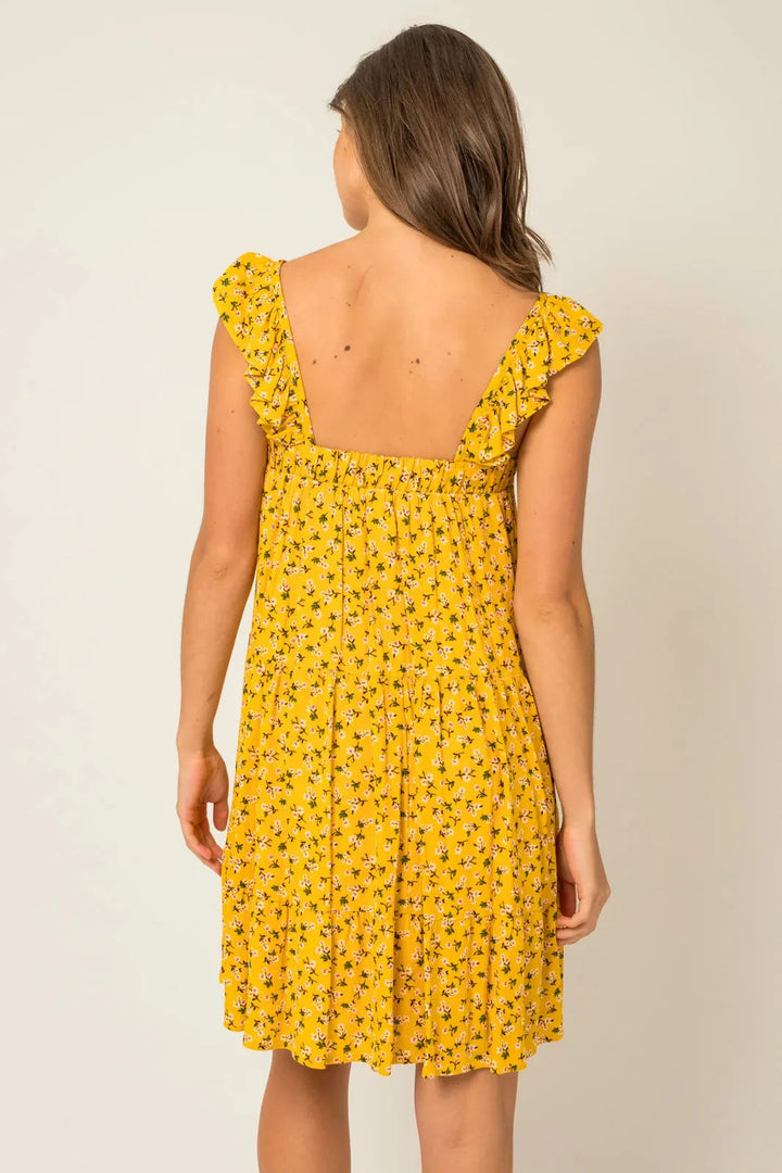 Square Neck Ditsy Print Mini Dress with Ruffle Shoulders