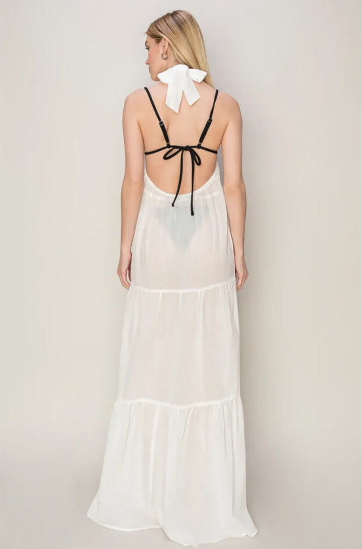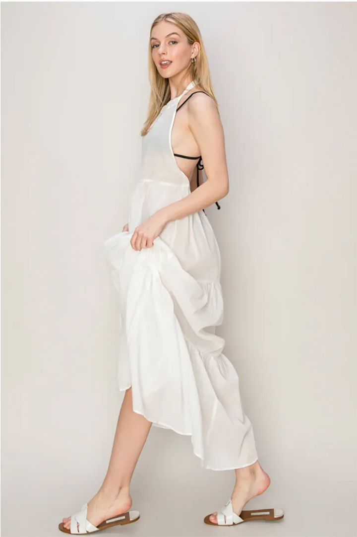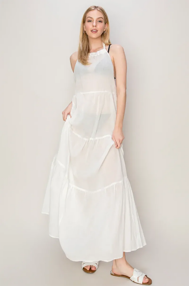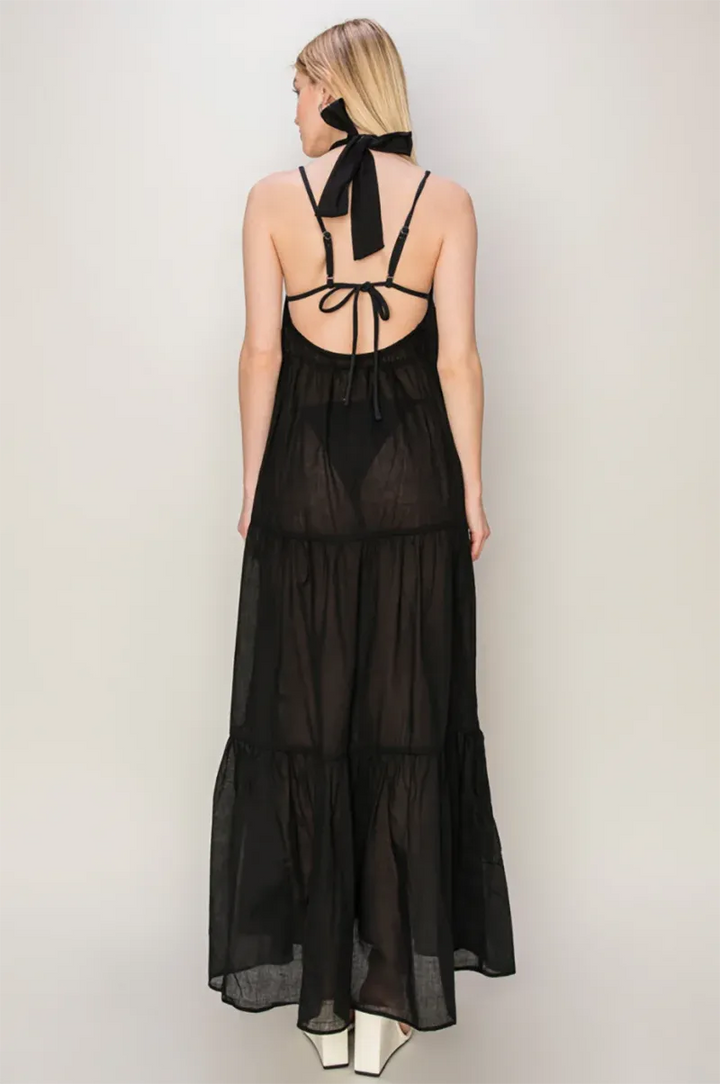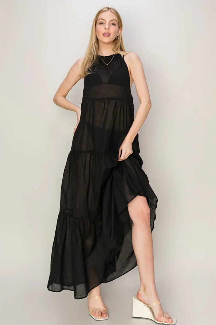 Semi Sheer Halter Neck Tiered Maxi Cover-Up Dress