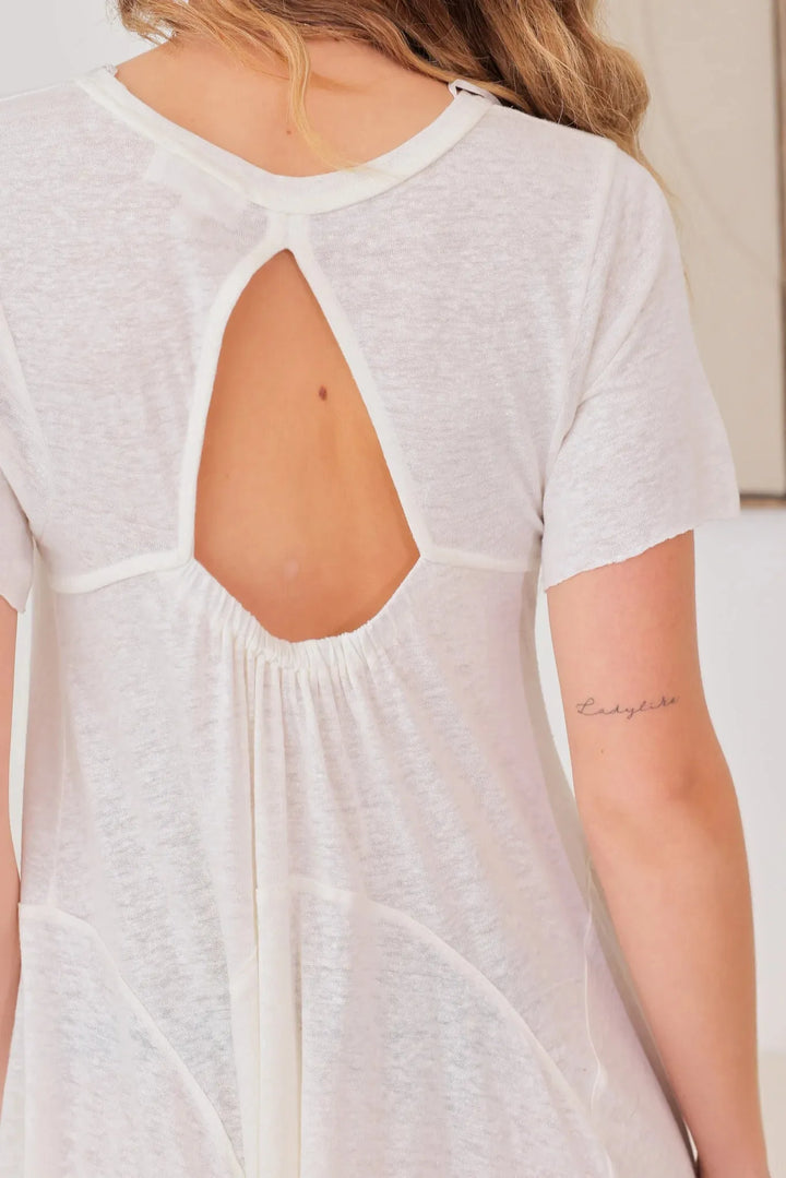 Refresh your boutique's summer collection with our lightweight, semi-transparent Keyhole Back Midi Dress. This breezy piece features a distinctive open back detail with a gathered edge, creating subtle intrigue in an otherwise clean-lined design. The see-through cotton blend provides a hint of transparency that's perfect for stylish layering options without being completely sheer.