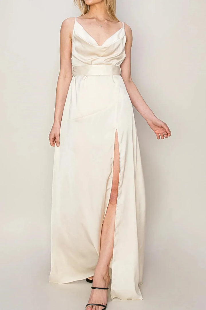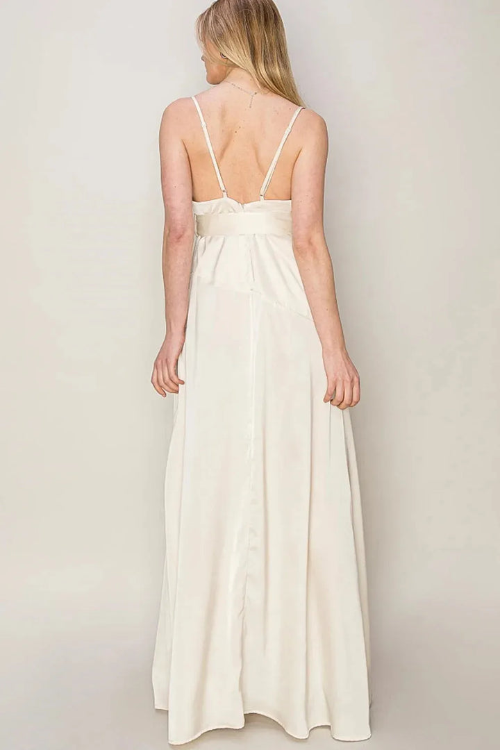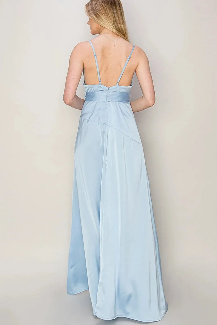 Satin Sleeveless Maxi Dress with Belt and Side Slit